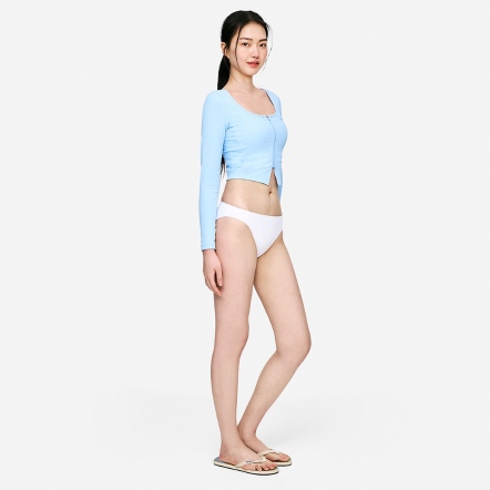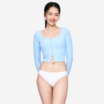 短版拉鍊式防曬衣,不僅適合水上活動穿著,也可作為日常外搭罩衫(Cover-up)使用,兼具實用與時尚感。