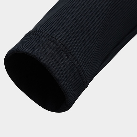 採用羅紋彈性面料,手感柔滑、延展性優異,具備速乾特性,讓您在濕熱環境中依然保持乾爽舒適。