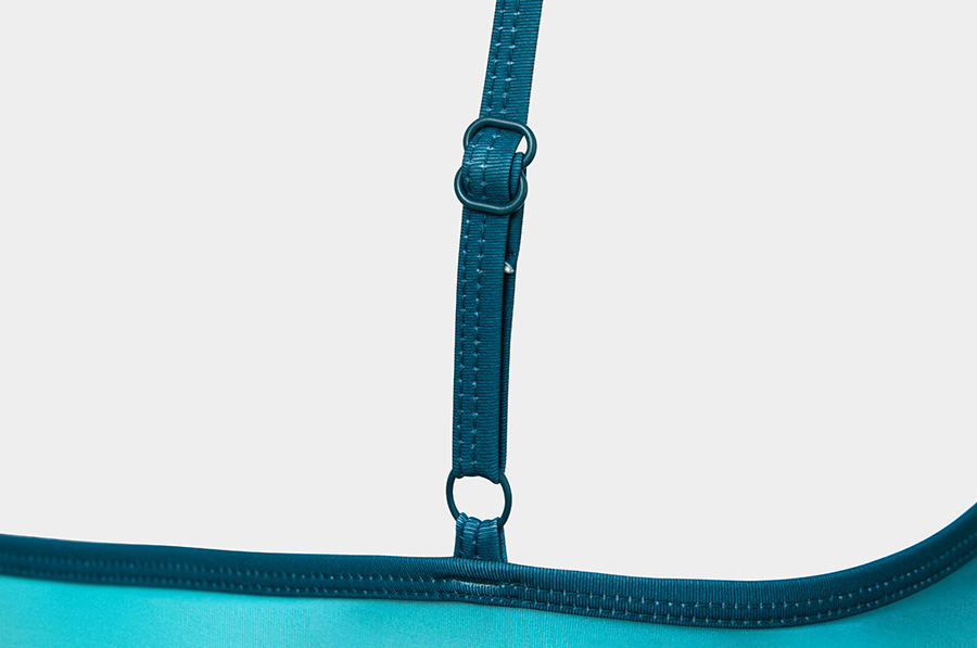 細肩帶長度可調節,依照體型貼合身形。內部附有可替換胸墊的內裡,並隨附基本款胸墊,提供完整包覆與支撐。