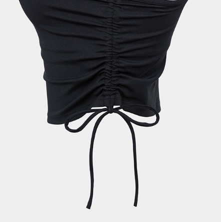 左側設有可調整抽繩設計,可打造自然的皺摺(Shirring)效果,展現女性柔美曲線。