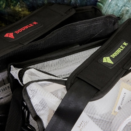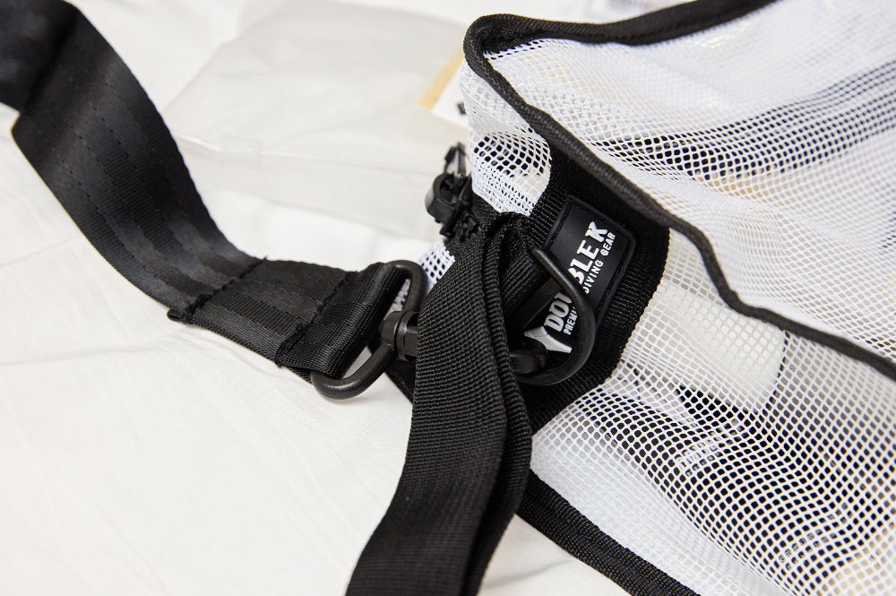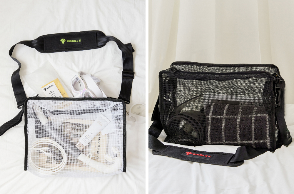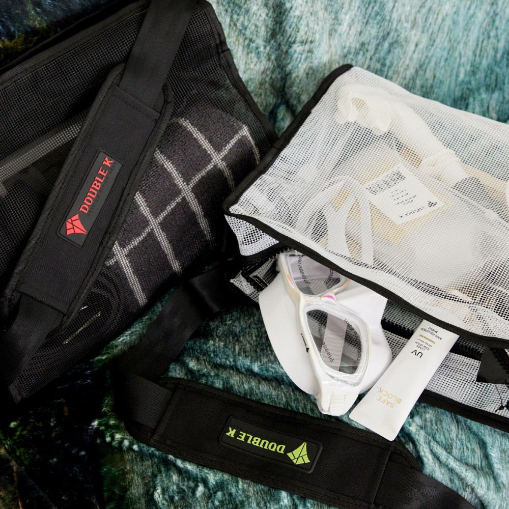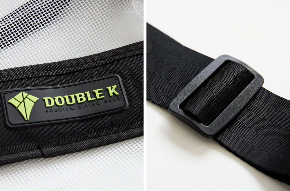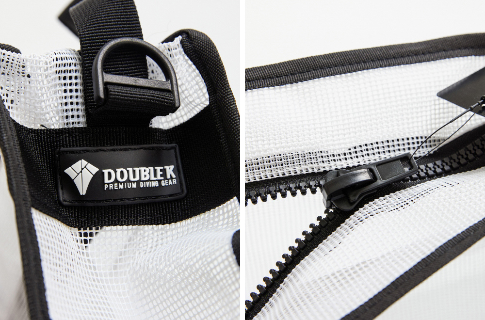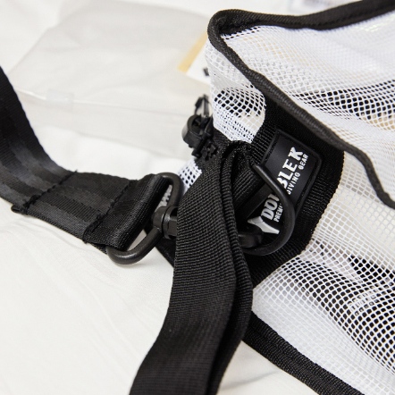 設有 便利的手提帶與掛鉤,並搭配 螢光色與紅色拼接的肩帶,增添時尚感。這款 簡約又有型的多功能方形網布包,不僅適合收納潛水裝備,也能靈活運用於日常生活。材質採用 PVC 塗層網布,有效減少袋身變形。