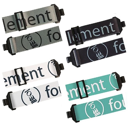 Fourth Element盡可能使用回收材料製成;鬆緊帶由橡膠和再生尼龍製成;這些夾子由汽車業回收的廢棄 ABS(丙烯腈丁二烯苯乙烯)塑膠製成。夾子的設計使其適合大多數面罩扣,並適合所有第四元素面罩。與 SCOUT 面罩一起提供,或作為大多數其他面罩類型的改裝選項出售。
