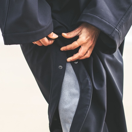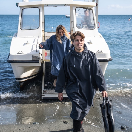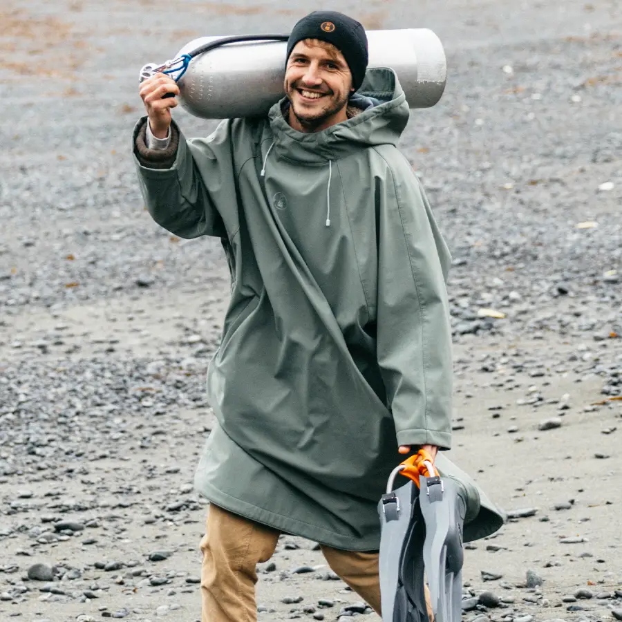 這款全天候雨披保暖、快乾且體積小巧,方便您隨身攜帶。穿上它即可在海灘或船上換上潛水衣。在水中訓練後用它熱身或在潛水之間遮蓋。防水、抓絨襯裡布料輕盈、舒適,採用環保、無氟防水處理製成。側邊通風口由按扣固定,換衣服非常簡單,寬大的暖手口袋增加了熱身時的舒適度。可調式兜帽具有帽簷,即使在最惡劣的天氣下也能提供出色的保護,使其成為您永遠不想沒有的裝備。