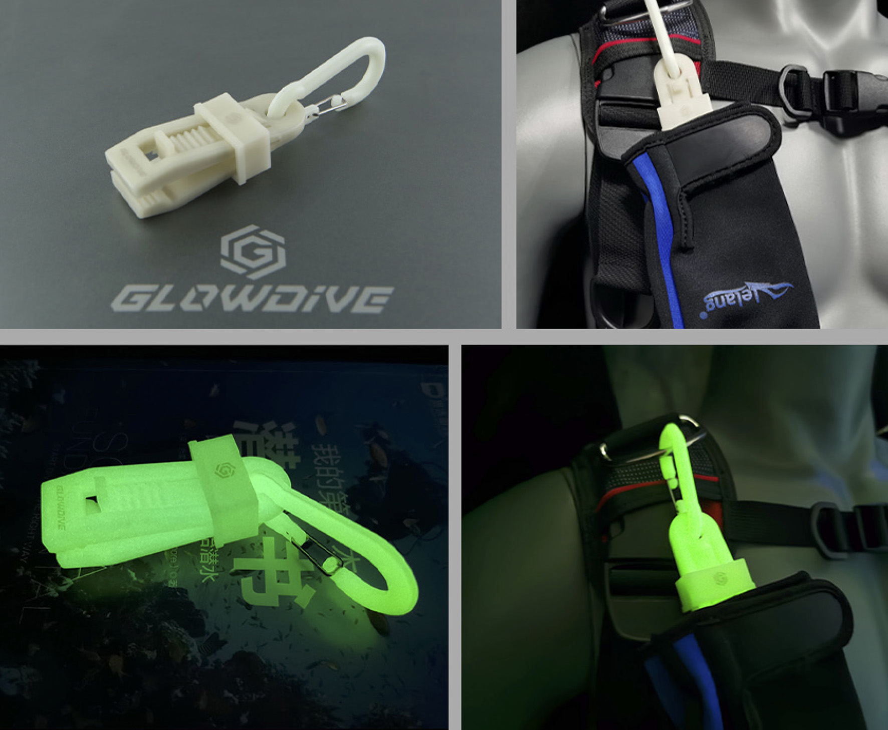 可用於水下環境,懸掛手套於BCD,用於夜光標識,方便取拿。