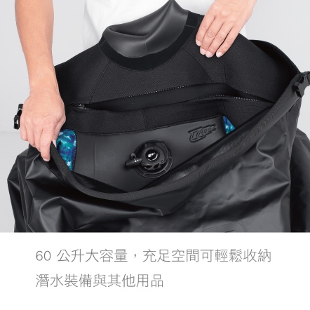 內部空間寬敞,配有排氣閥,打包後可壓縮體積,無論潛水或旅行皆適用。提供兩種尺寸選擇,滿足不同需求。