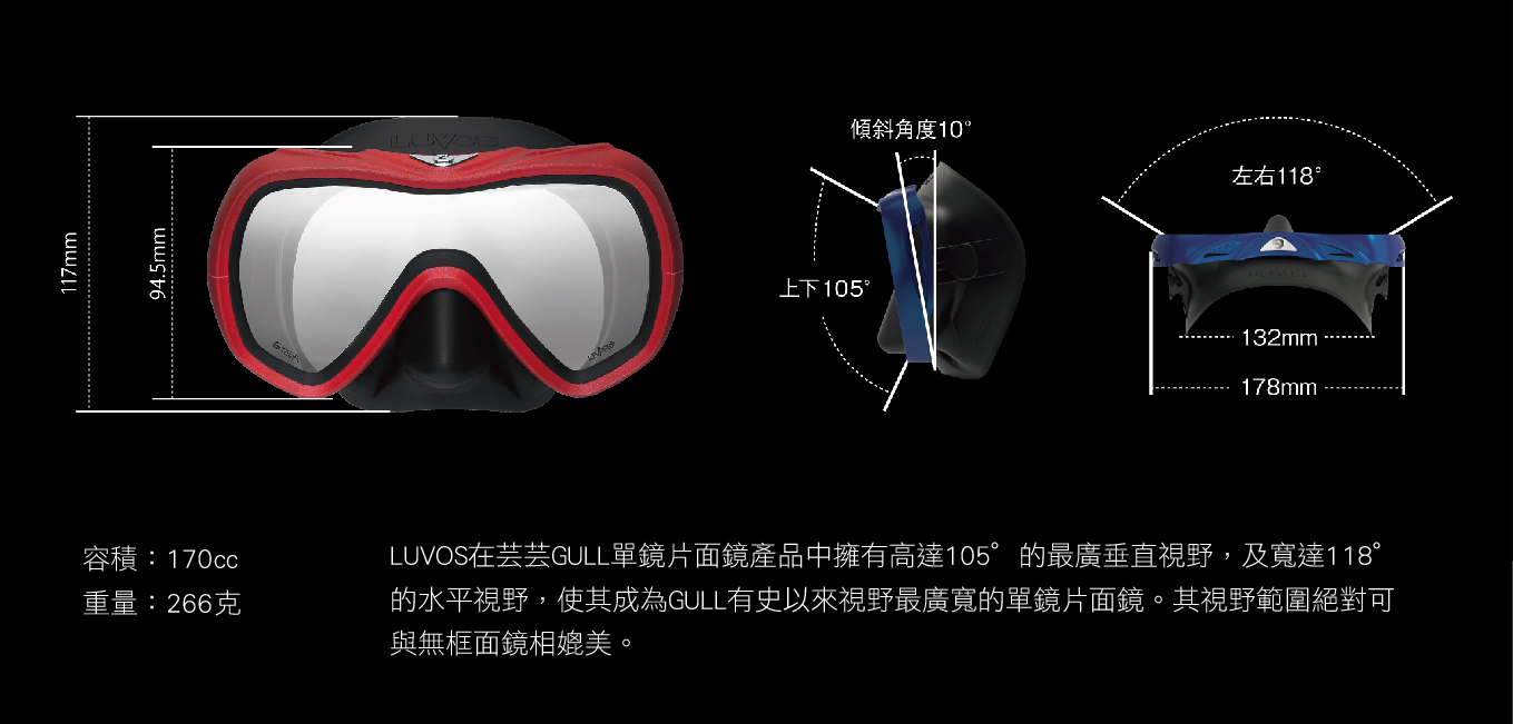 全新推出的LUVOS廣角單鏡片面鏡,為Gull面鏡系列中提供最廣闊視野的產品。