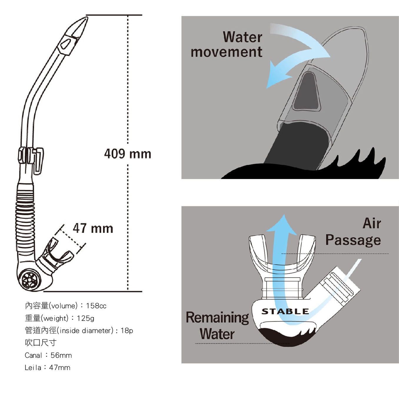 ■ 品牌:GULL 2025 Leila Stable 呼吸管[咬嘴較小]■內容積:158cc■重量:125g■管道內徑:φ18mm■採用大排水室+大排水閥