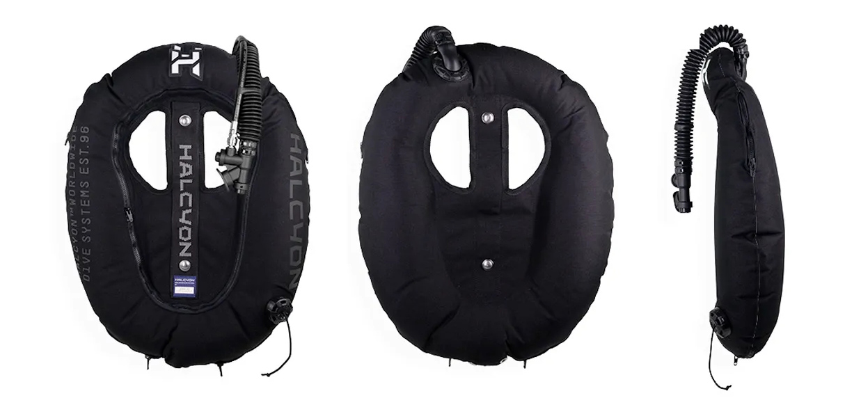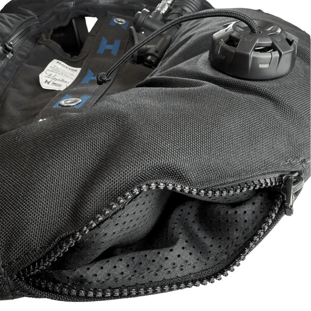 氣囊上的開孔是延續在Halcyon Legend雙瓶BC系統中驗證的設計,可將殘壓錶和乾式防寒衣充氣管穿過氣囊開孔固定在靠近潛水員的位置,避免管線和氣囊互相壓制,