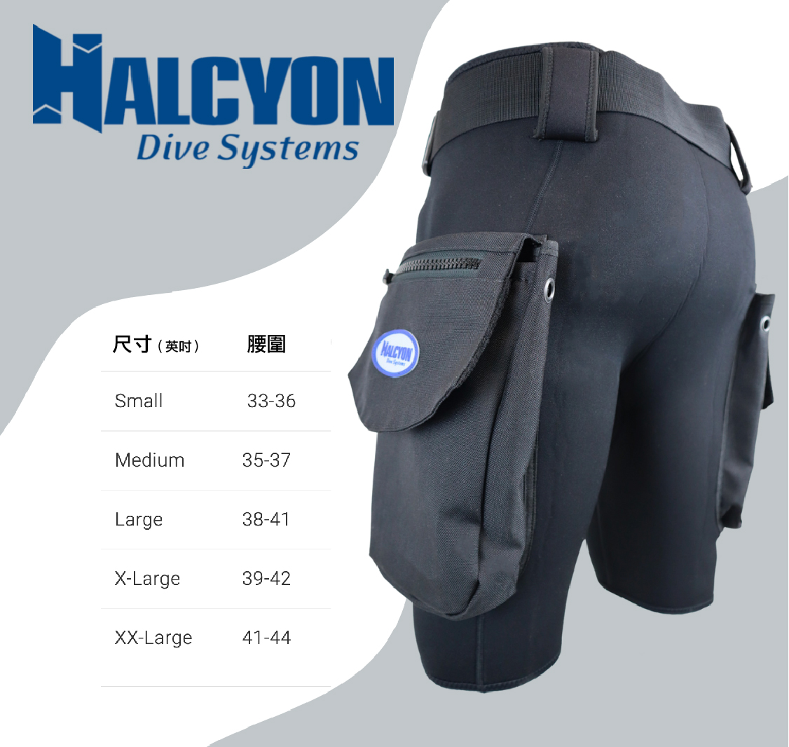 Halcyon 的 Tech 潛水短褲設有兩個大的工裝口袋、口袋中的鬆緊環以及帶塑膠扣的寬腰帶