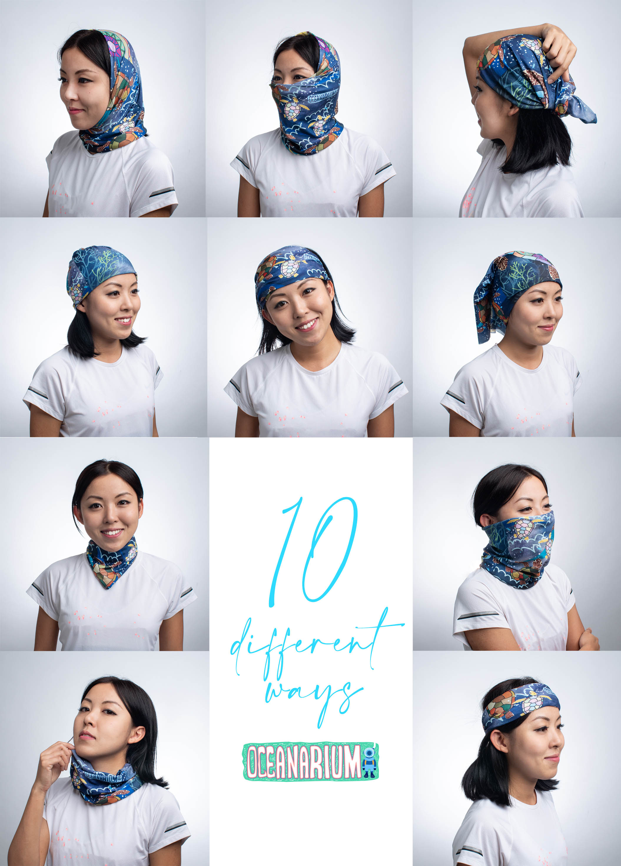 多功能運動頭巾, 舒適柔軟彈性好 UPF50防UV, 附圖片參考有9-10種穿戴方式, 迎合不同陸上及水下活動