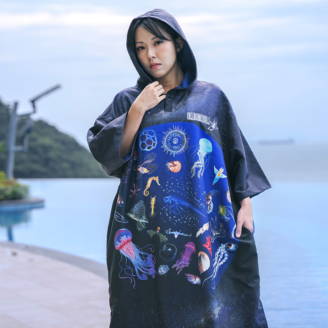 OCEANARIUM 速乾前扣式毛巾衣[黑水生物]