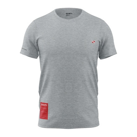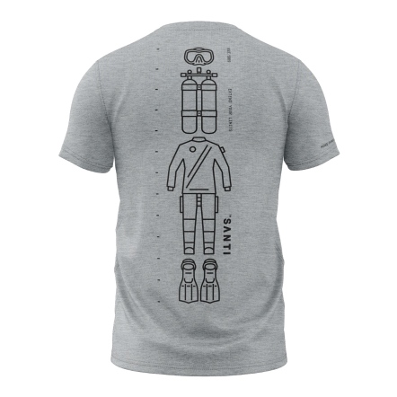 混紡 T-Shirt,背面印有潛水裝備圖案,前方印有 Santi 標誌,簡約又具個性。