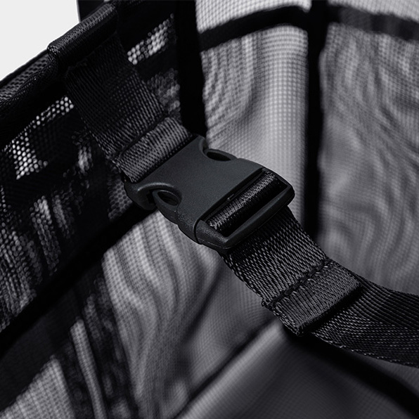 主口袋採用雙觸式釦具設計,有效防止袋口張開,確保物品安全。底部網布設計方便水分迅速排出,保持乾爽。
