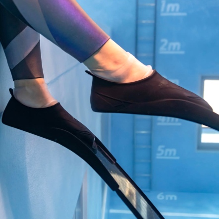 矽膠特性使其遇水後非常滑,務必 與蛙鞋同時穿脫。