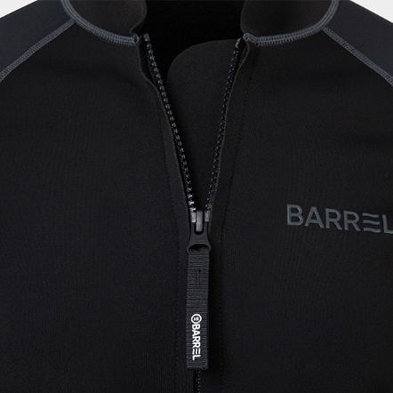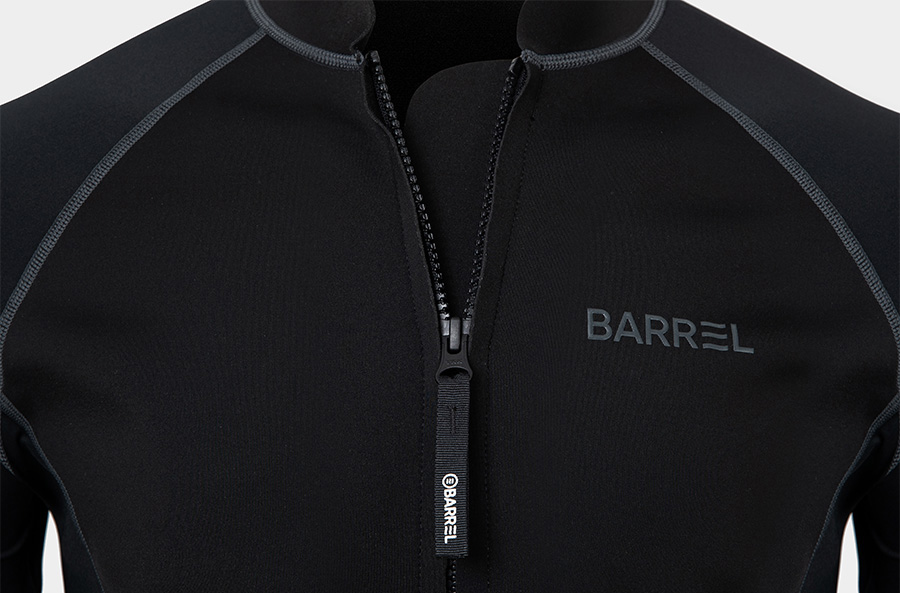 這款拉鍊式混合防寒衣,在身體部位採用輕量且高彈性的 1mm 氯丁橡膠材質,兼具保暖性與靈活度。腰線剪裁設計能修飾身形,展現俐落的修長輪廓。