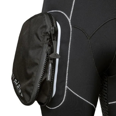 防水 W30連身衣是 2.5 毫米潛水衣,非常適合熱帶水域。它還具有一個獨特而巧妙的小工具,WPAD™,這是一個精心構造的擴展塢,位於右臀部,用於放置一系列新配件,如口袋、燈或魚槍支架。也可以單獨購買技術配件袋。