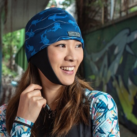 全天多功能 2mm 潛水料頭套不論水上/水下活動皆可助頭部保暖,內置彈性下巴帶當活動性較高或遇水流時可使用, 也可助耳部保暖,非需要時可藏於帽內側直接戴上